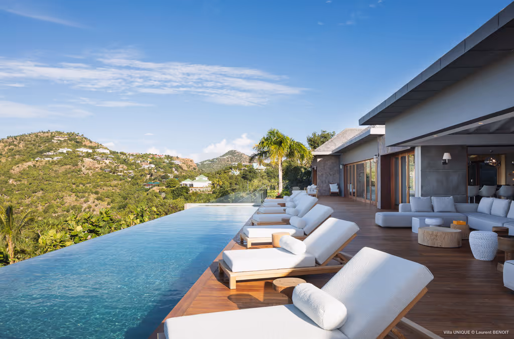 Set on the heights of Saint-Jean, Villa Unik reveals sweeping views over the turquoise horizon, capturing the essence of elegant Caribbean living. This remarkable property blends bold contemporary architecture with refined design details, creating a luminous retreat overlooking one of the most iconic bays in St Barts. With ten beautifully appointed bedrooms and ten ensuite bathrooms, the villa welcomes up to 20 guests in an atmosphere of comfort, privacy and understated sophistication.