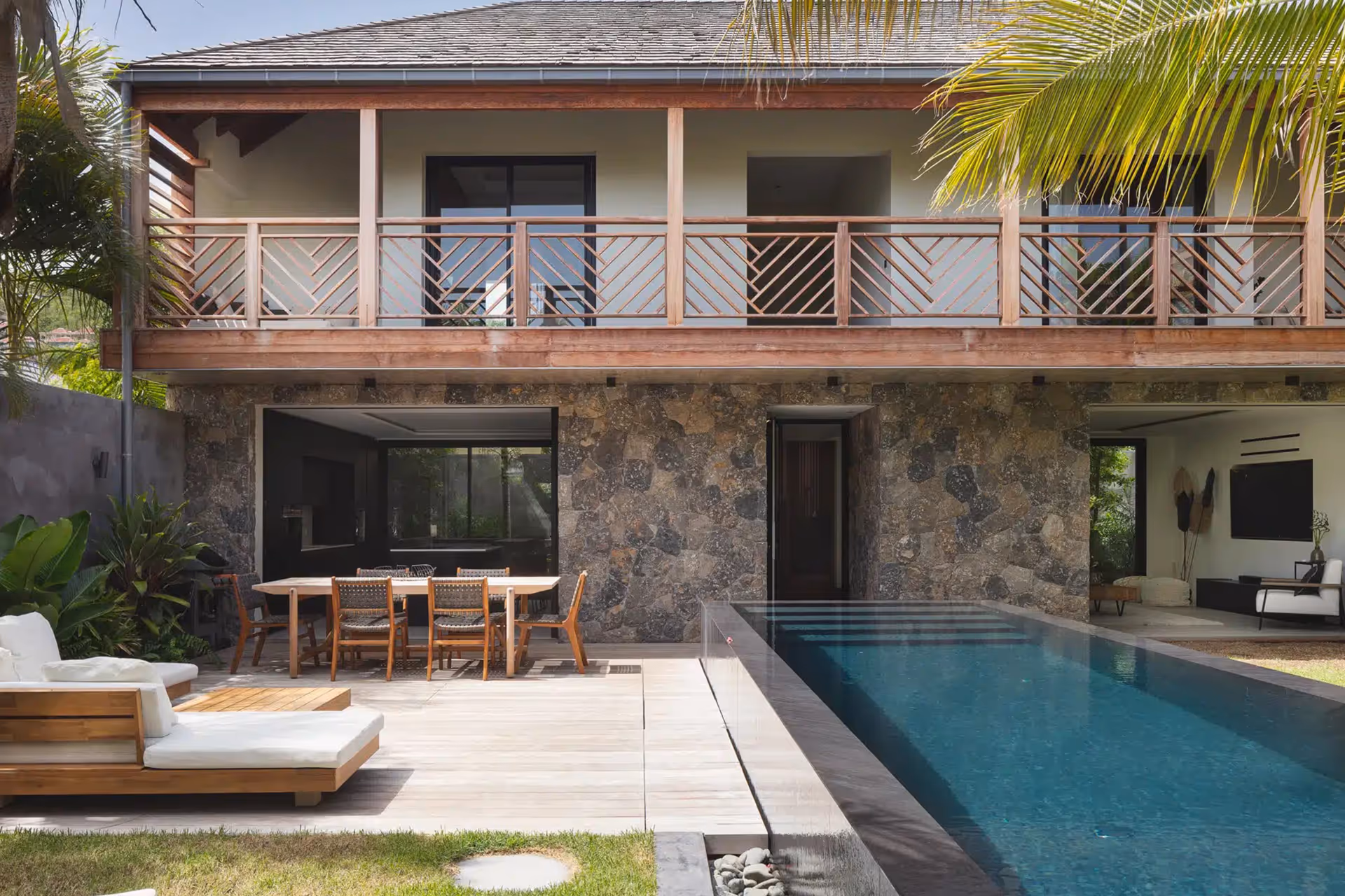 La cuisine parfaitement intégrée et les espaces de vie ouverts permettent de profiter de la douceur de l'air tropical en toute discrétion.
