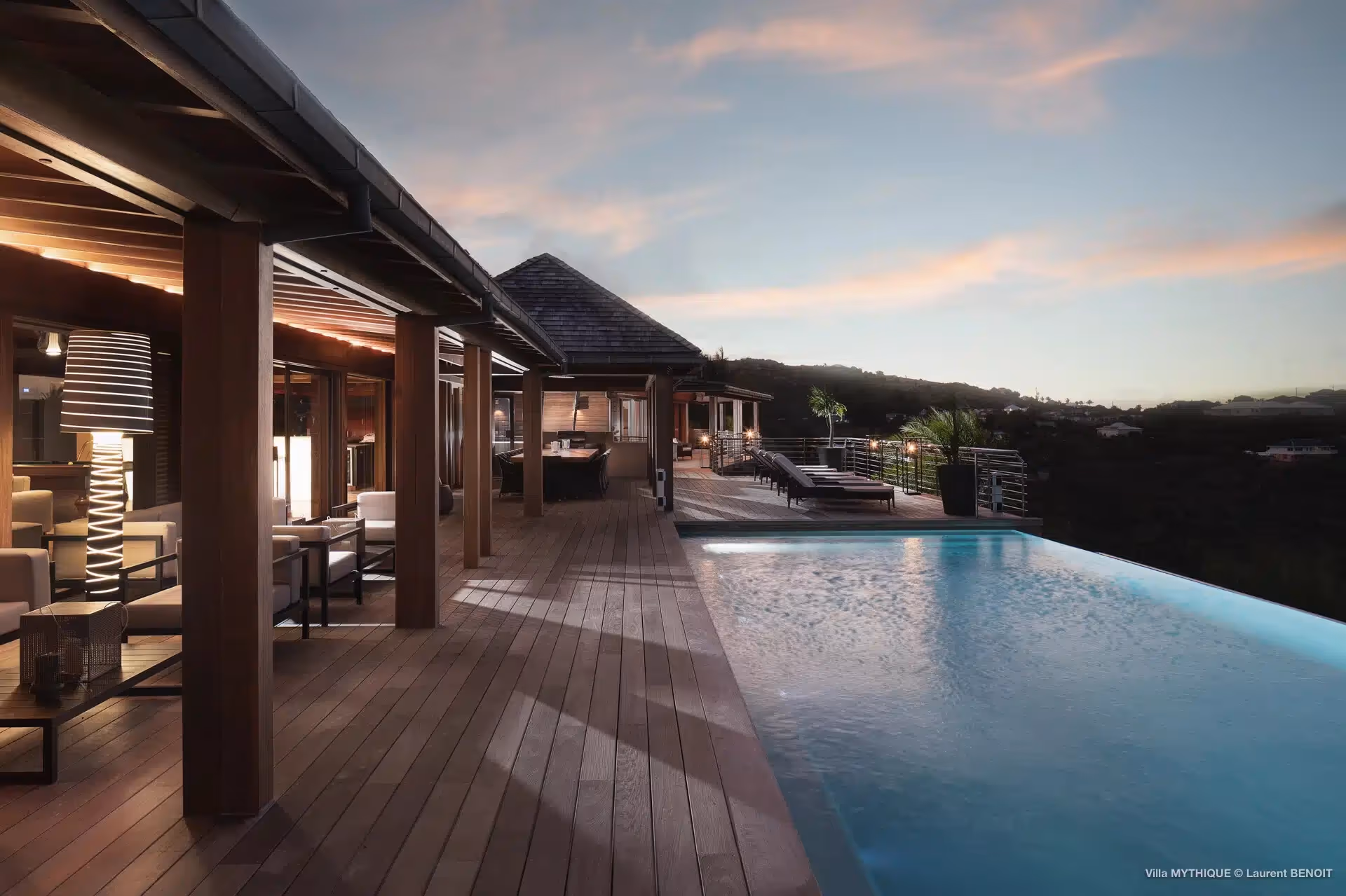 Située sur les hauteurs de Marigot, la villa Mythique domine la baie avec une ampleur saisissante. Cette propriété récente réunit six chambres, toutes avec salle de bains, et offre un cadre intime pour les familles et groupes souhaitant profiter d’un séjour élégant à Saint-Barth. Les volumes sont généreux, baignés de lumière, enveloppés de boiseries tropicales qui créent une atmosphère chaleureuse et raffinée.