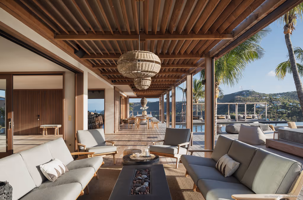 Située sur les hauteurs de Saint-Jean, la villa Ohana s’étend comme un vaste domaine privé, pensé pour accueillir jusqu’à 18 voyageurs dans un cadre d’une rare élégance. Composée de deux résidences distinctes, elle offre neuf chambres avec salles de bains, des espaces généreux et une atmosphère apaisante où le paysage de Saint-Barth s’invite à chaque instant.