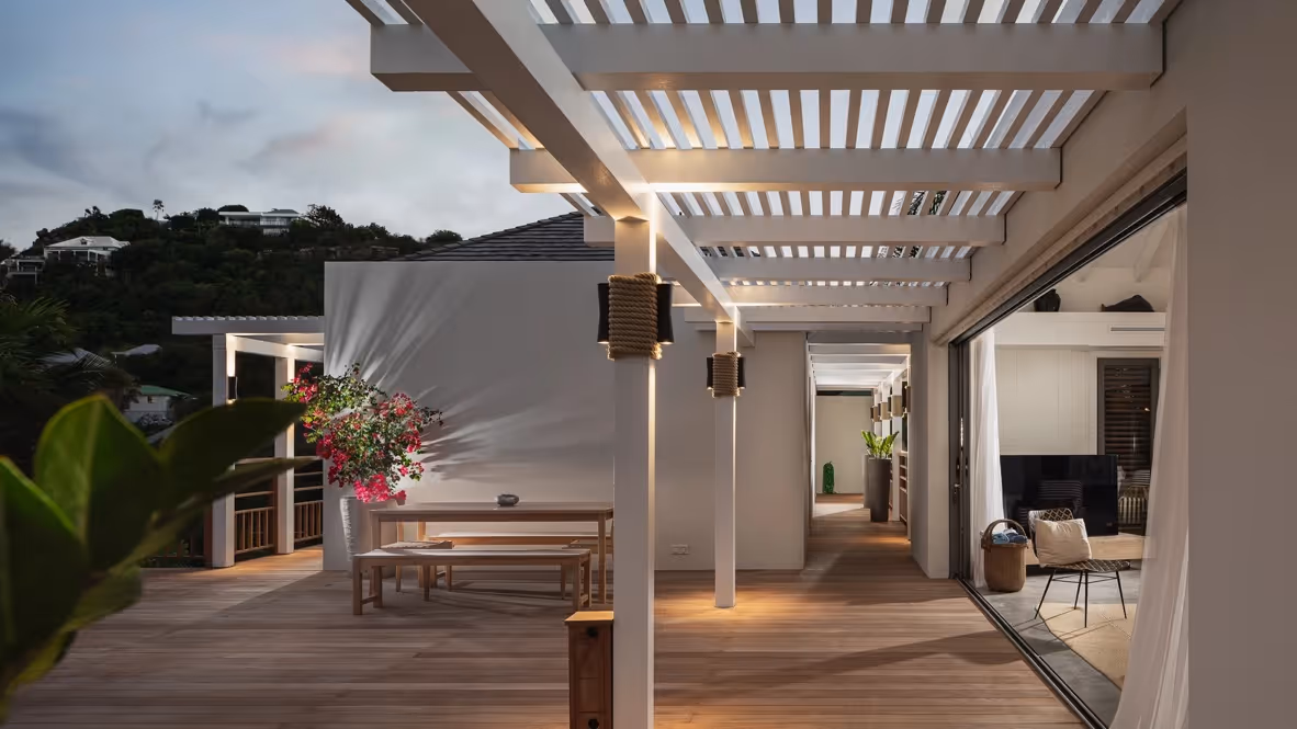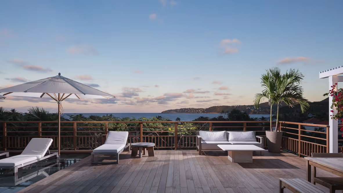 Dominant la baie sauvage d’Anse des Cayes, cette propriété se distingue par une architecture qui privilégie les lignes horizontales et l'ouverture totale sur l'Atlantique.