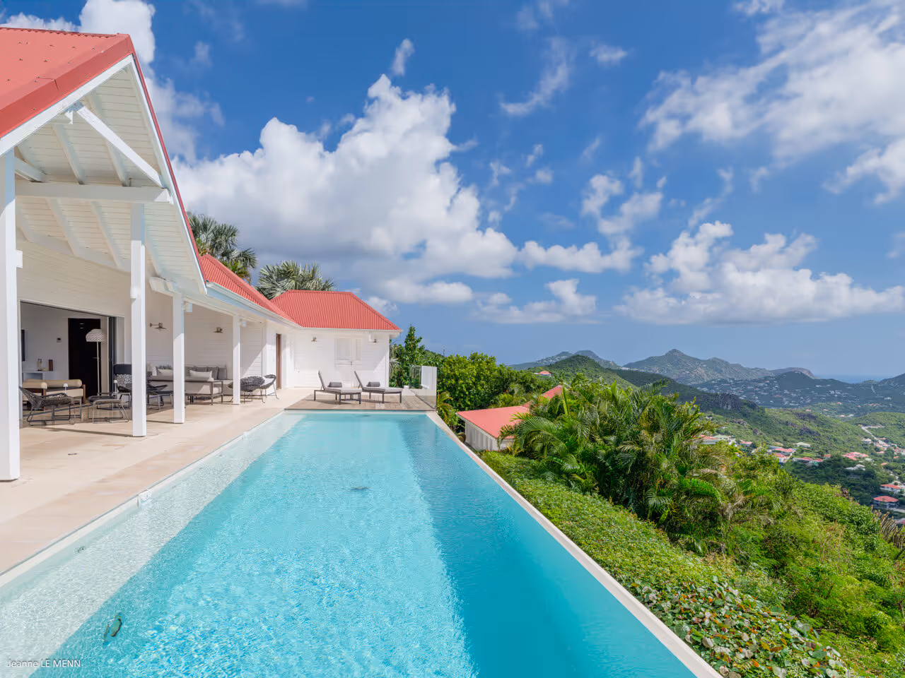 Située dans le quartier paisible de Colombier, cette propriété offre une vue saisissante sur l’horizon, où la mer rejoint le ciel dans un dégradé de bleus. Conçue pour accueillir jusqu’à huit voyageurs, elle s’articule autour de quatre chambres élégantes, chacune avec sa salle de bain, réparties entre le niveau principal, l’étage inférieur et un bungalow indépendant. Chacune ouvre sur la mer, créant un lien constant avec le paysage.